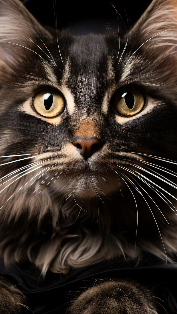 Edytor tapety: Czarny puszysty kot z długimi wąsami
