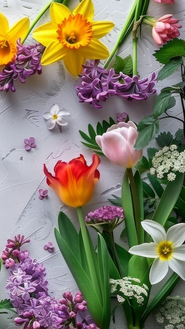 Edytor tapety: Różne kolorowe kwiaty na jasnym tle
