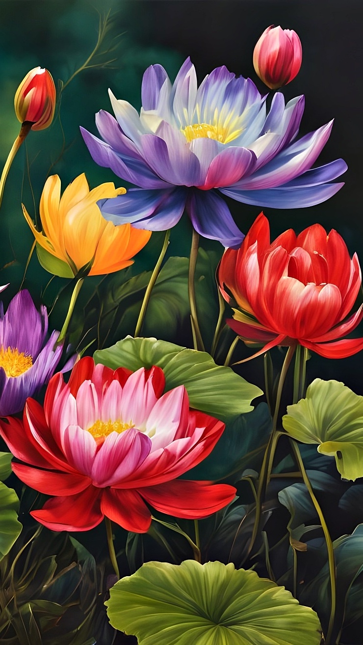 Edytor tapety: Rozwinięte kolorowe kwiaty w grafice