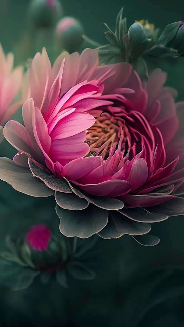Edytor tapety: Rozkwitający kwiat piwonii i pąki