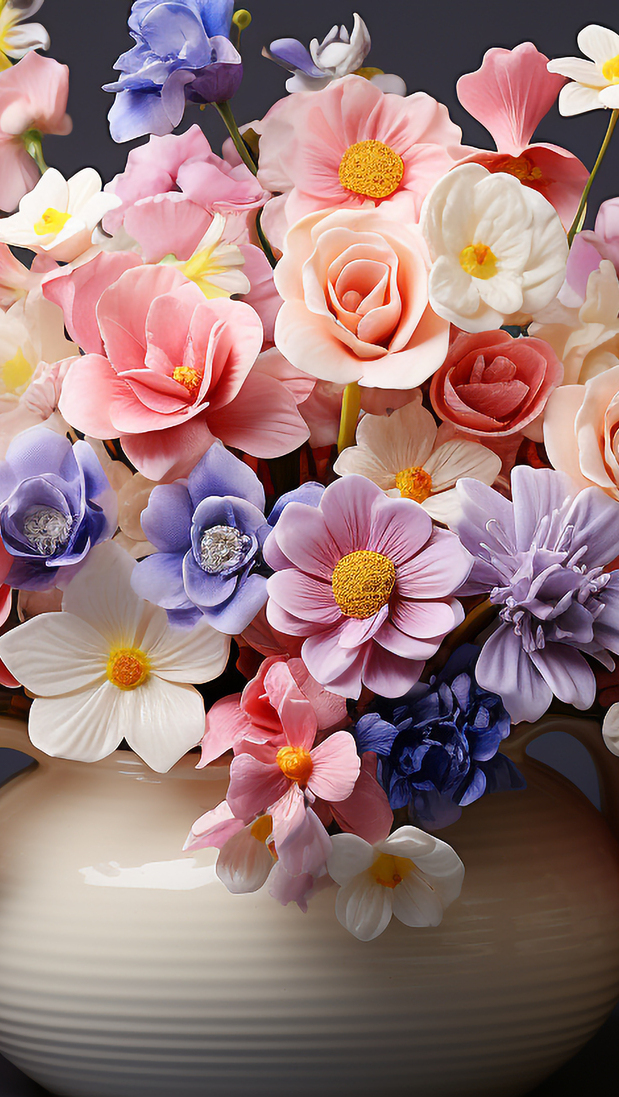 Edytor tapety: Kolorowe różne kwiaty w wazonie