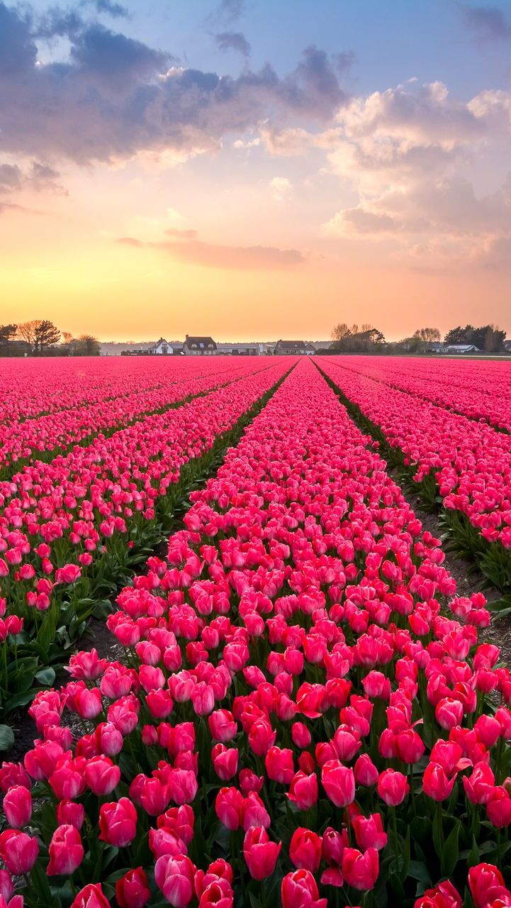 Edytor tapety: Plantacja czerwonych tulipanów