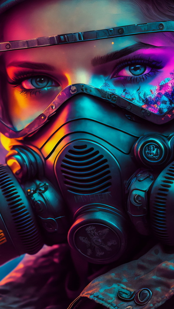 Edytor tapety: Kolorowa twarz kobiety w masce przeciwgazowej
