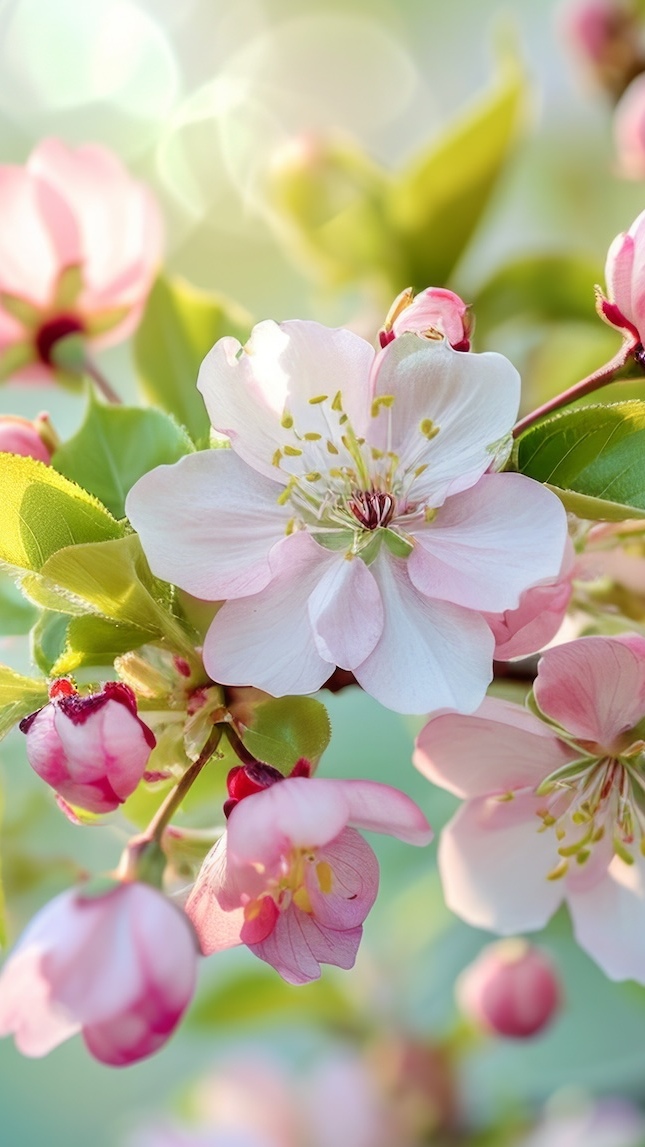 Edytor tapety: Rozświetlona ukwiecona gałązka drzewa owocowego