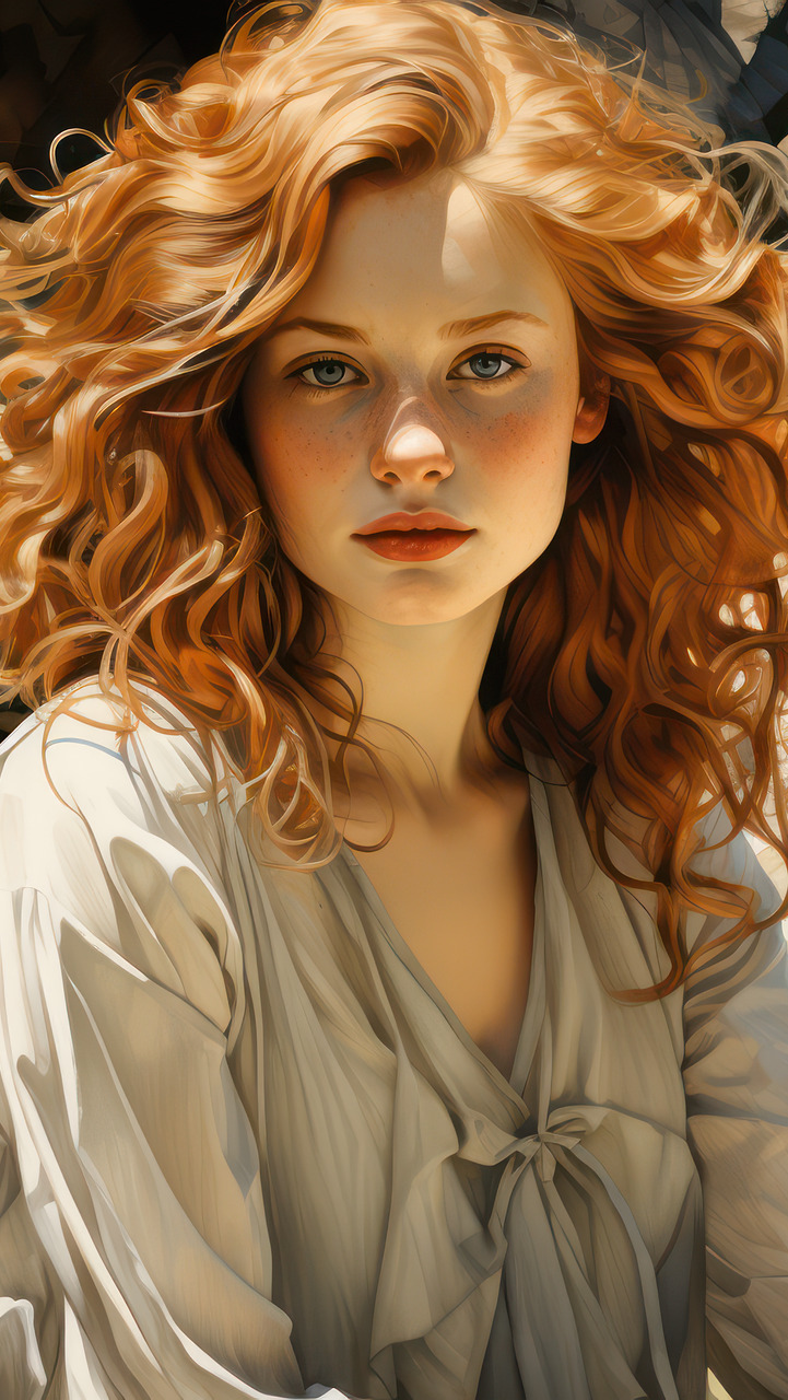Edytor tapety: Rozświetlona twarz rudowłosej dziewczyny