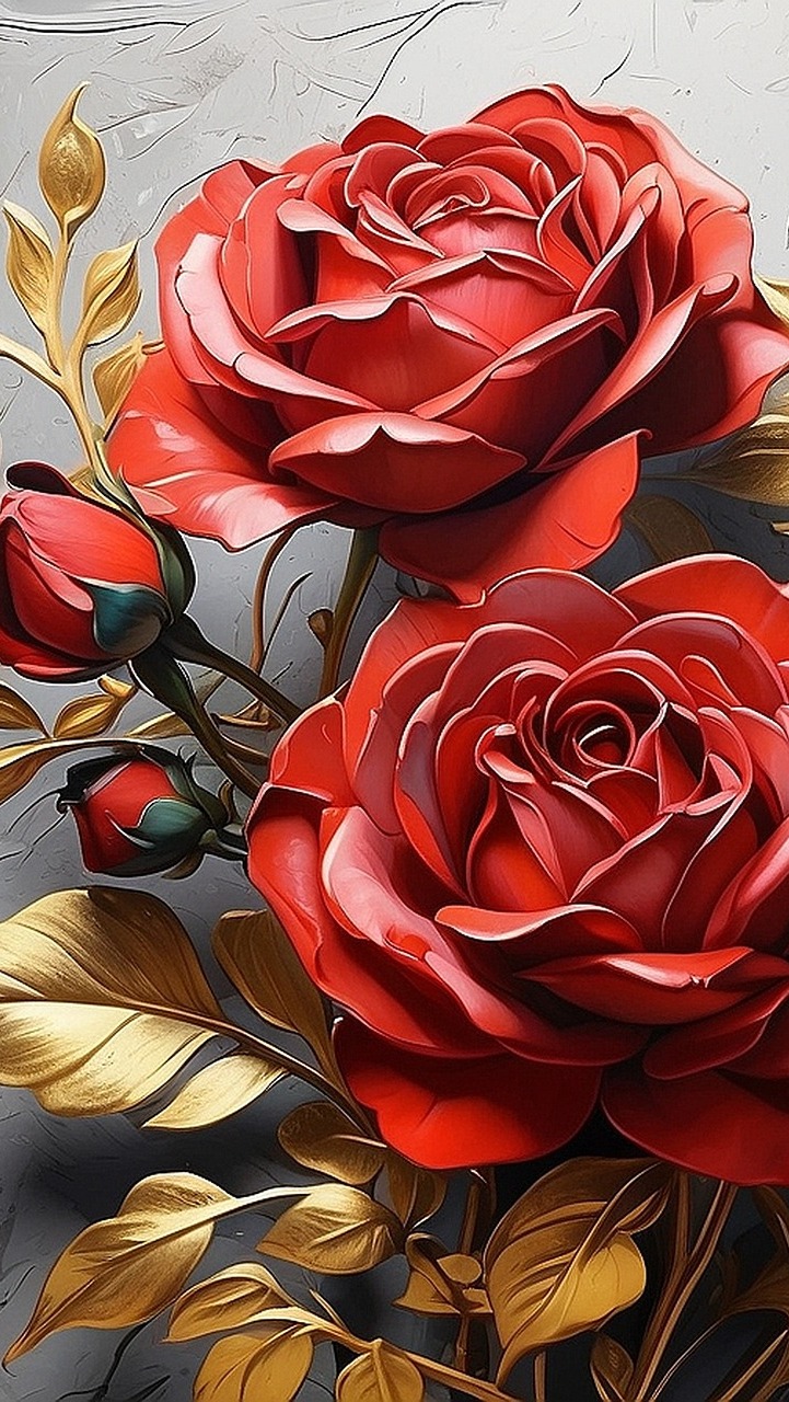 Edytor tapety: Czerwone róże ze złotymi liśćmi
