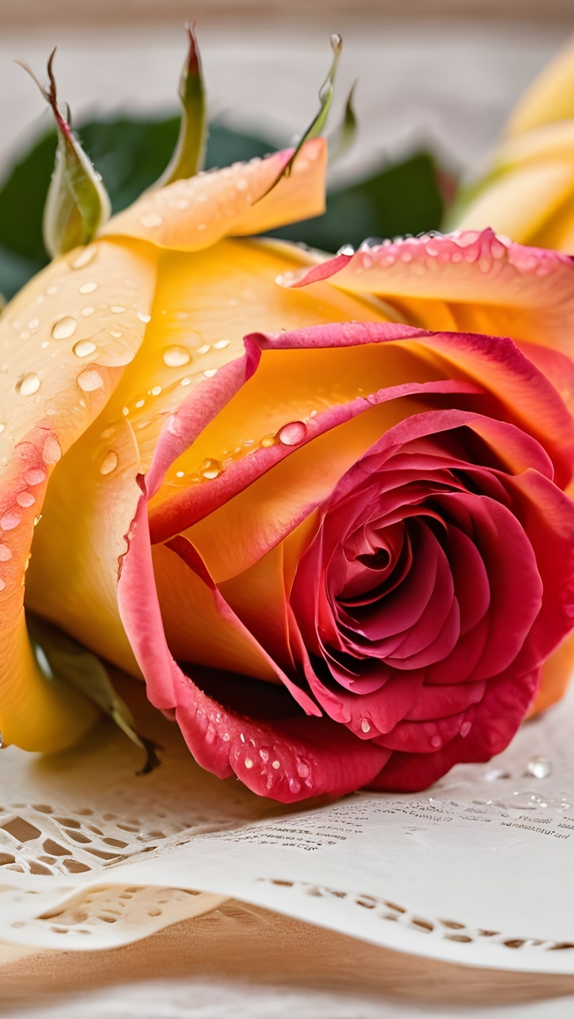 Edytor tapety: Rozkwitająca róża z kroplami wody