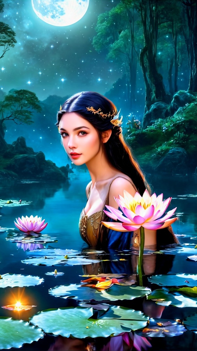 Edytor tapety: Dziewczyna i lilie wodne w stawie