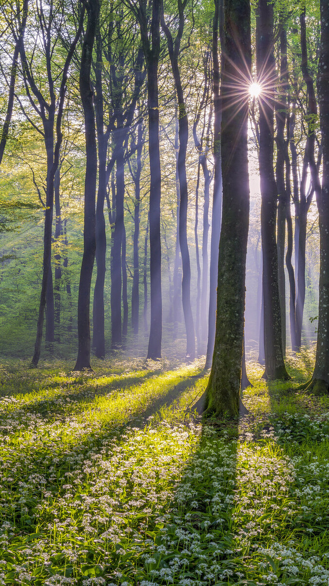 Edytor tapety: Czosnek niedźwiedzi w rozświetlonym lesie