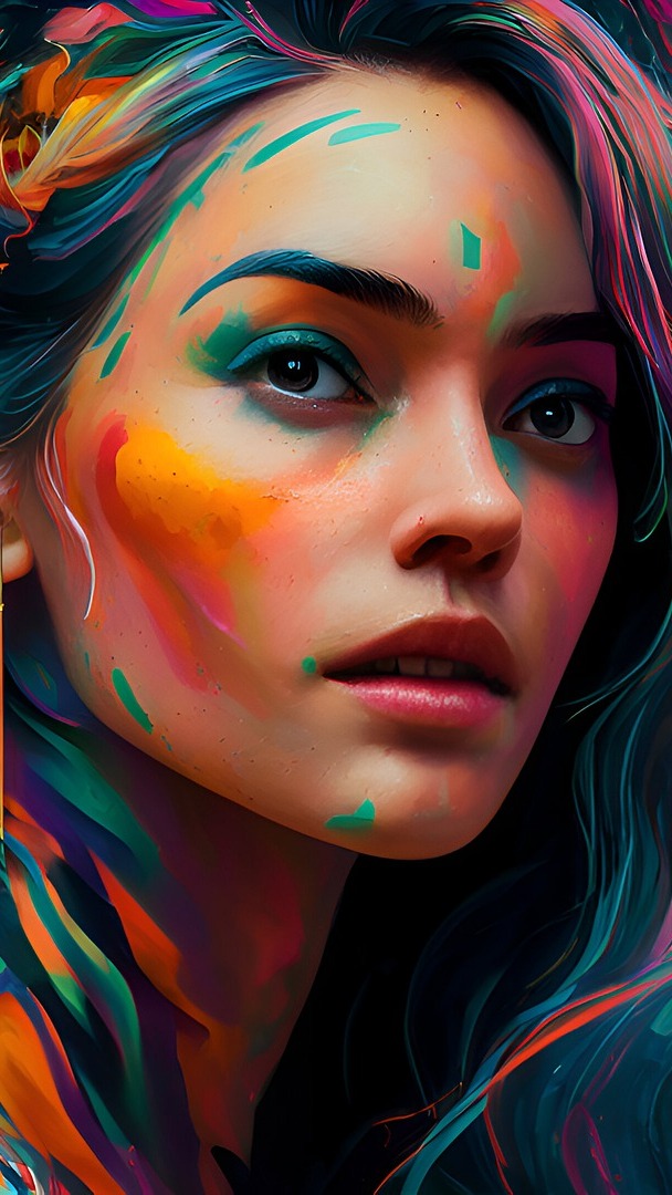 Edytor tapety: Kolorowa grafika twarzy kobiety