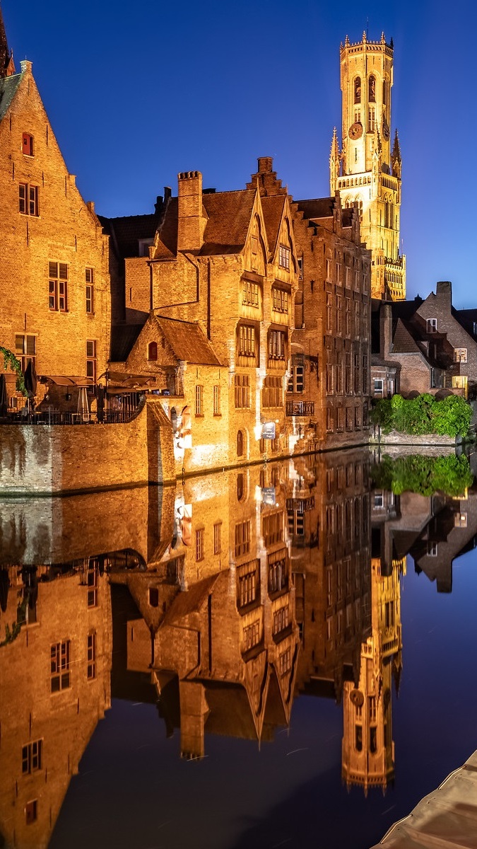 Edytor tapety: Domy nad kanałem wodnym w Brugii