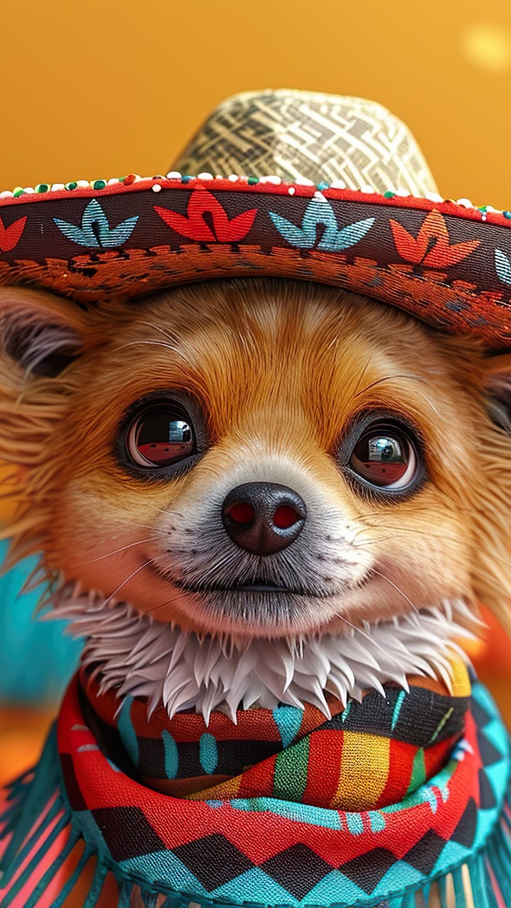 Edytor tapety: Głowa psa w kolorowym kapeluszu