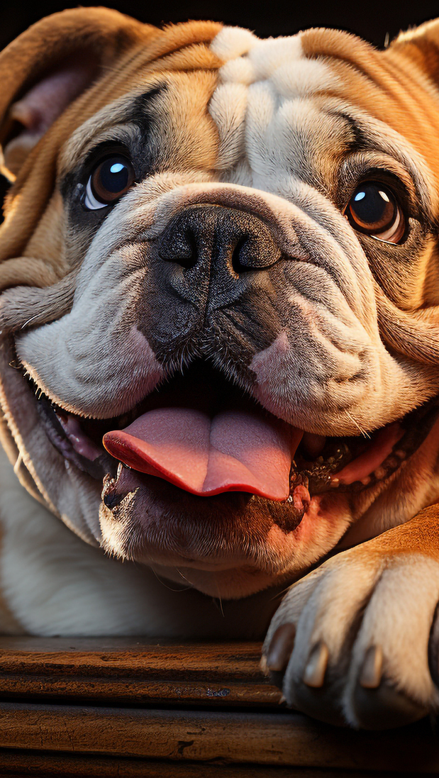 Edytor tapety: Uśmiech na mordce buldoga angielskiego