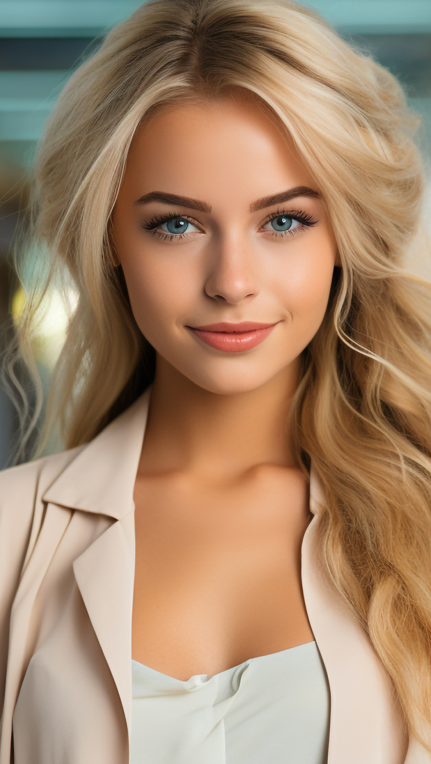Edytor tapety: Twarz długowłosej uśmiechniętej blondynki
