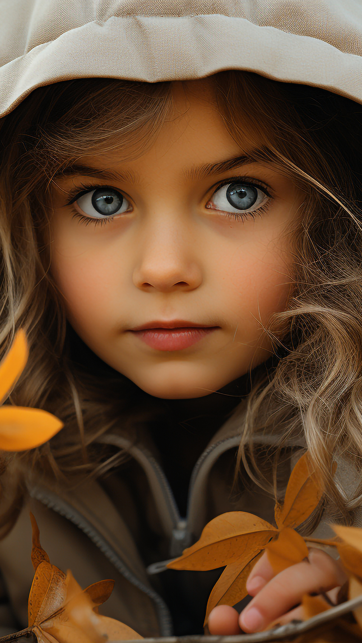 Edytor tapety: Twarz dziewczynki w szarym kapturze