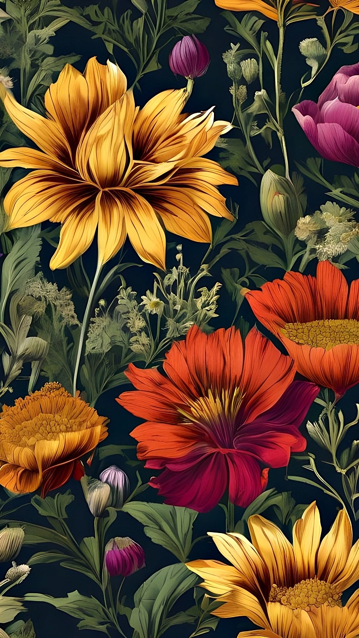 Edytor tapety: Grafika z kolorowymi kwiatami