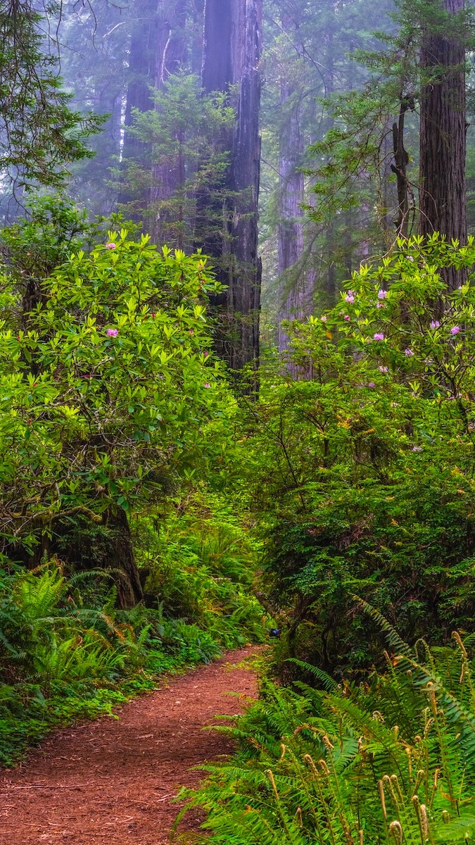 Edytor tapety: Różaneczniki przy leśnej ścieżce