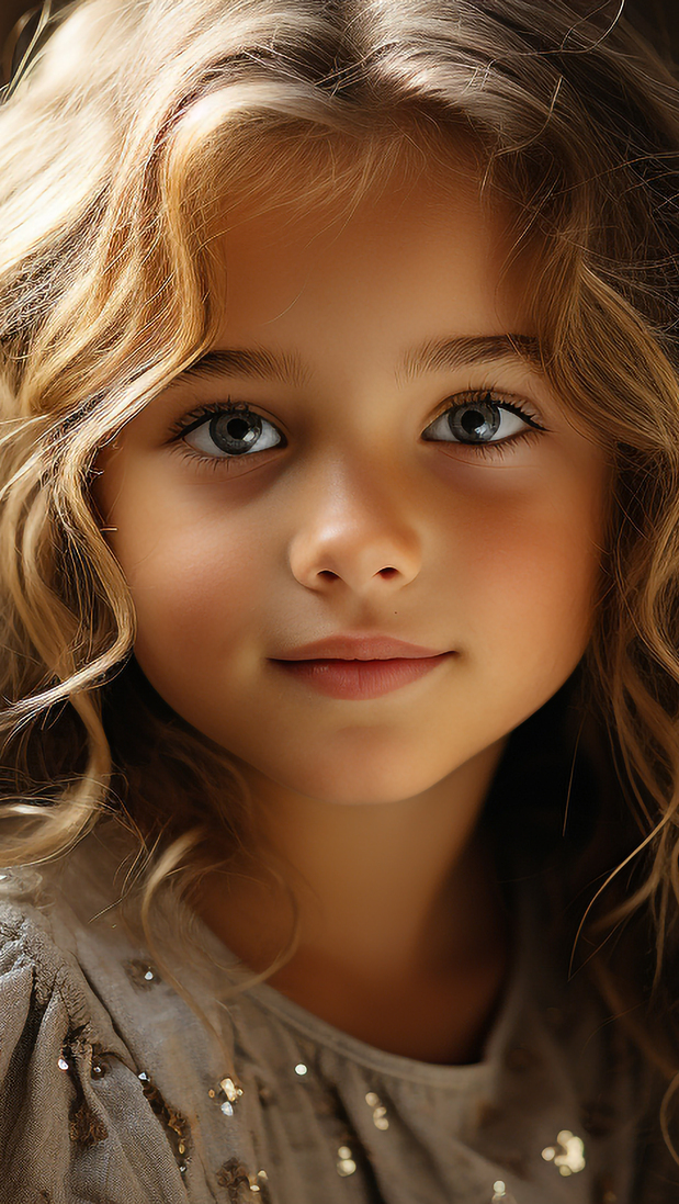Edytor tapety: Twarz dziewczynki z lekkim uśmiechem