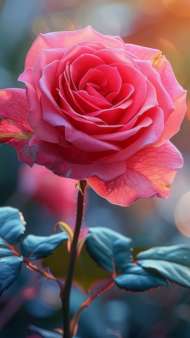 Edytor tapety: Rozwinięta różowa róża w zbliżeniu