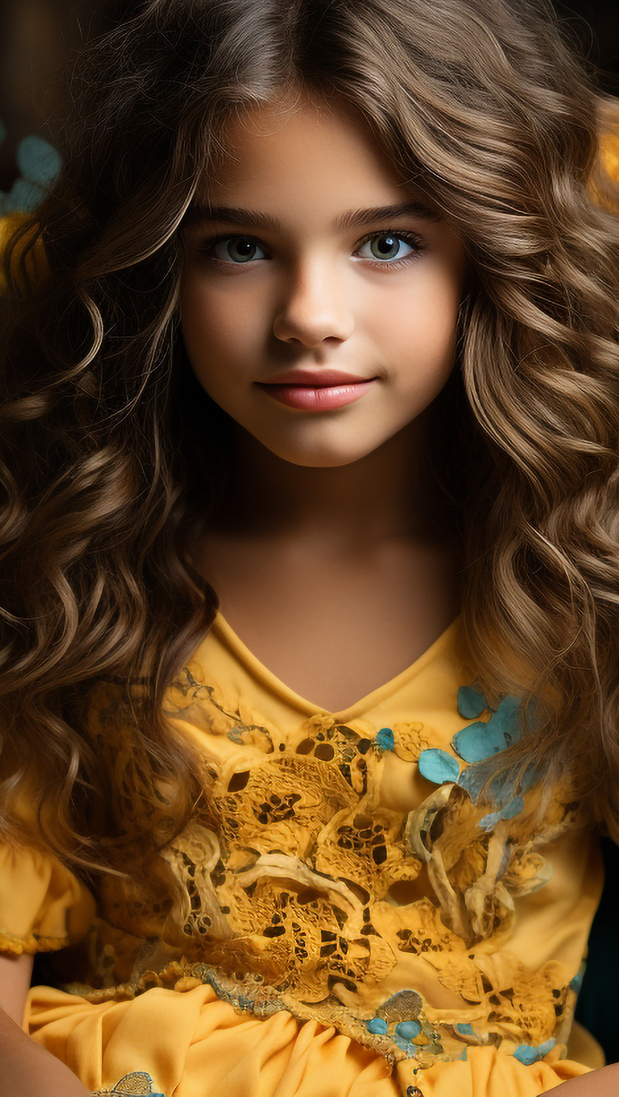 Edytor tapety: Długowłosa dziewczynka w żółtej sukience