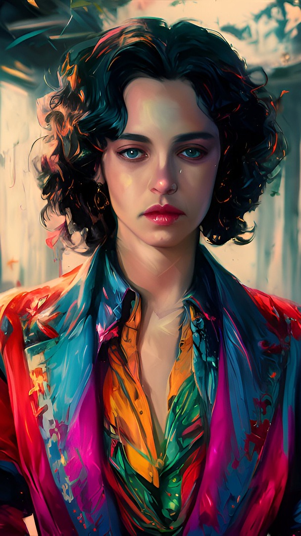 Edytor tapety: Kobieta w kolorowym ubraniu