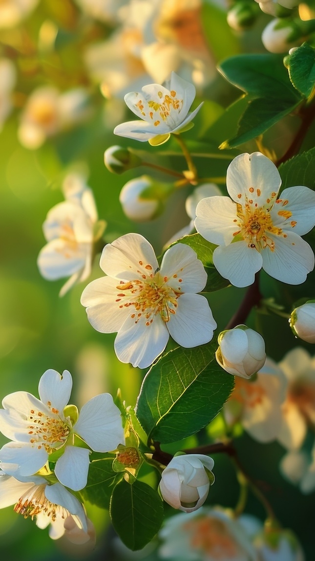 Edytor tapety: Rozświetlone gałązki z białymi kwiatuszkami