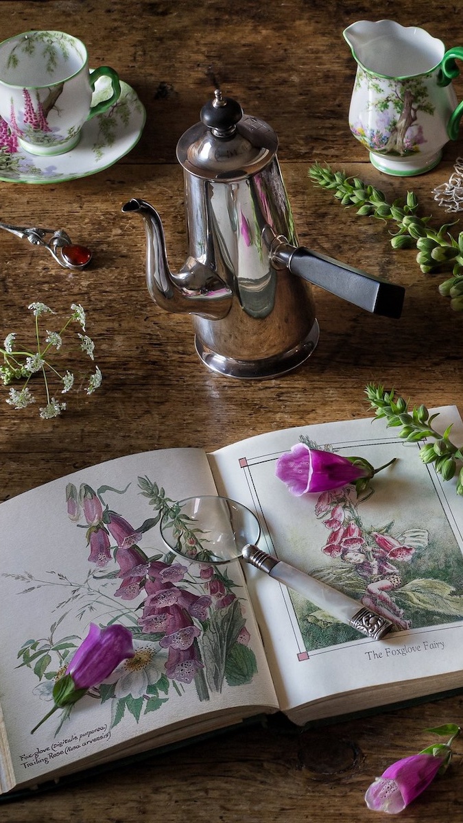 Edytor tapety: Kwiaty i lupa na otwartej książce