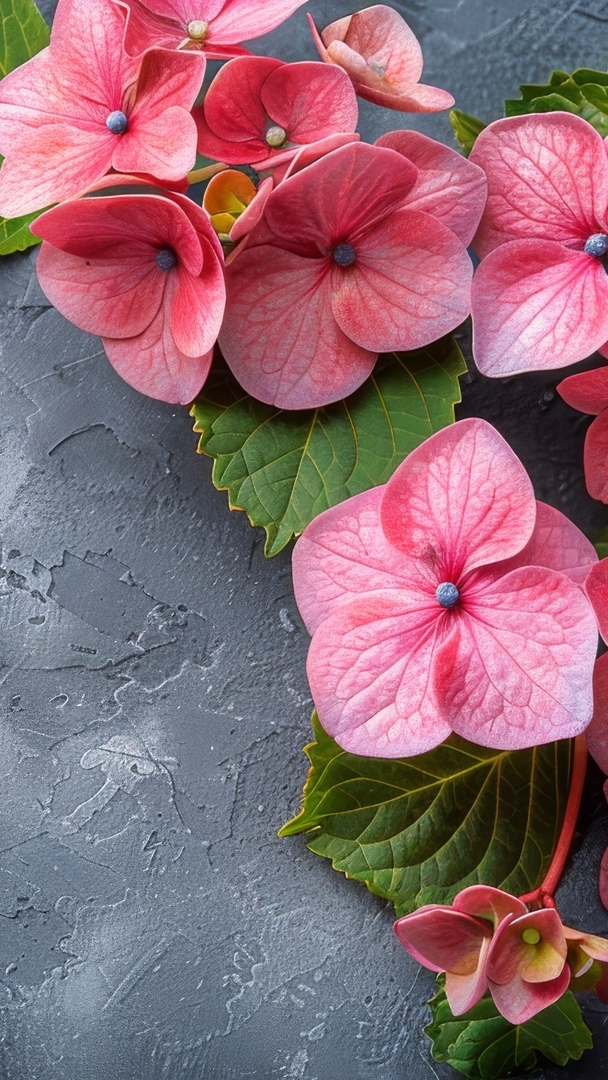 Edytor tapety: Różowe hortensje w zbliżeniu