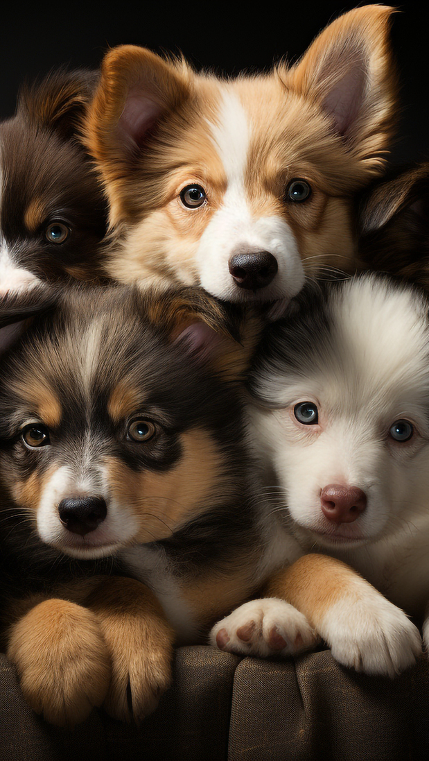 Edytor tapety: Szczeniaki na ciemnym tle