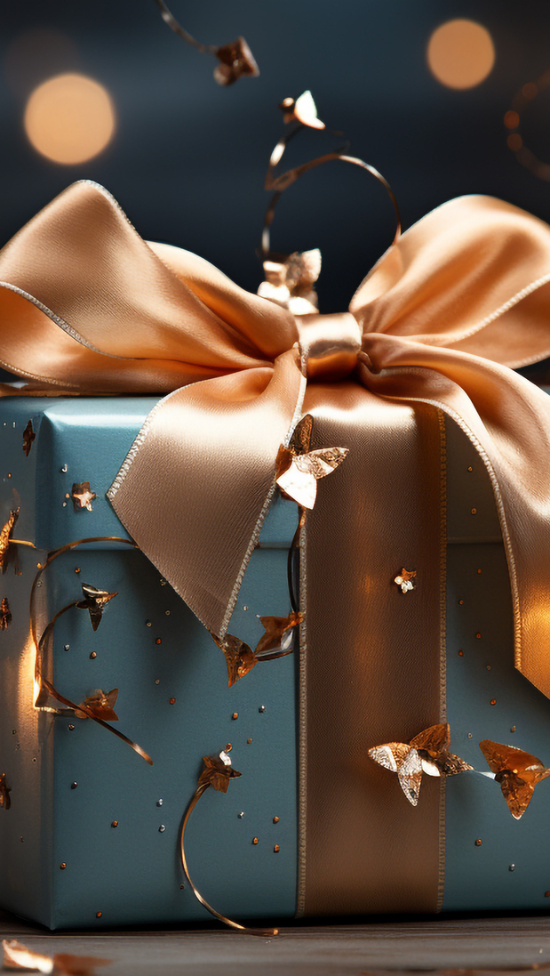 Edytor tapety: Pudełko z prezentem ze złotą kokardą