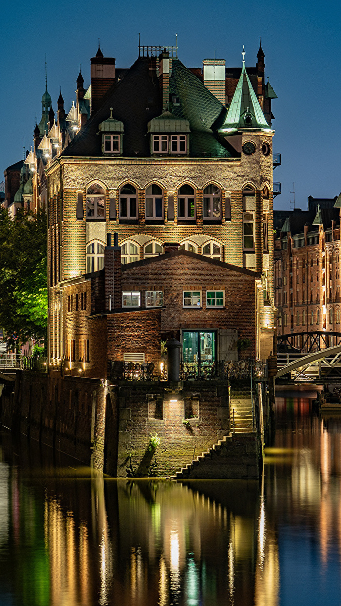 Edytor tapety: Domy nad kanałem wodnym w Hamburgu