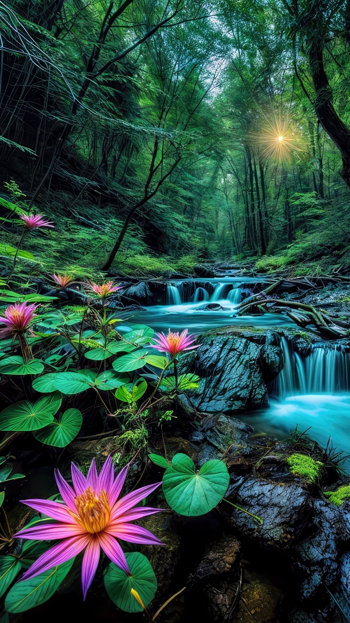 Edytor tapety: Kwiaty przy leśnym potoku
