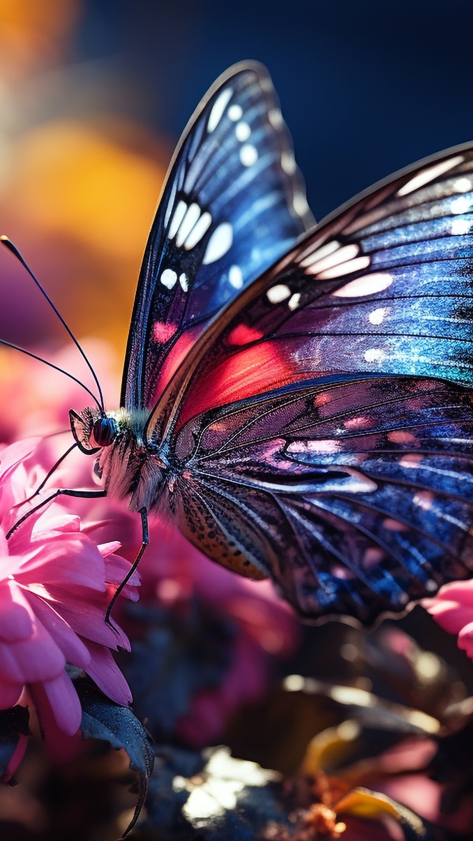 Edytor tapety: Rozświetlony motyl i różowe kwiaty