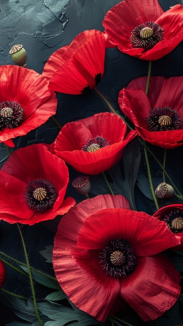 Edytor tapety: Rozwinięte maki na ciemnym tle