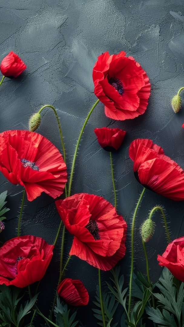 Edytor tapety: Czerwone maki na ciemnym tle