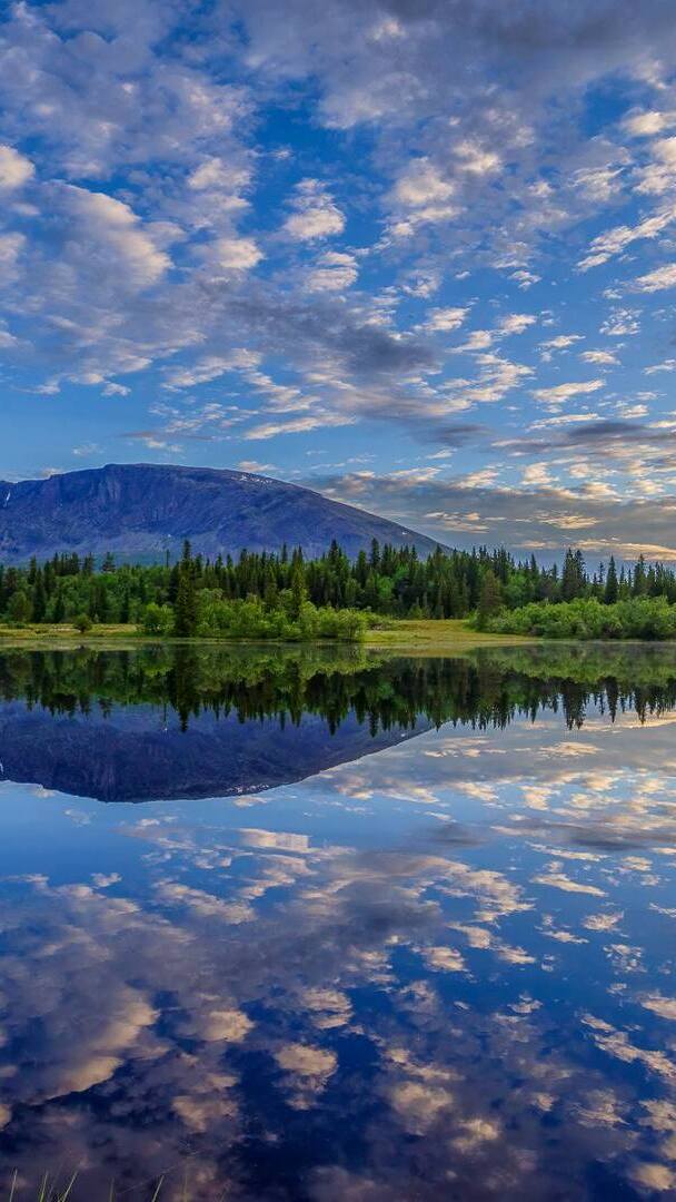 Edytor tapety: Odbicie białych obłoków w jeziorze