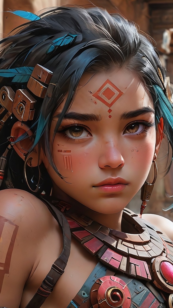 Edytor tapety: Twarz dziewczyny z tatuażem na czole