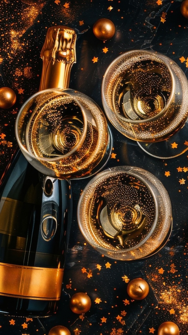 Edytor tapety: Trzy kieliszki i butelka szampana