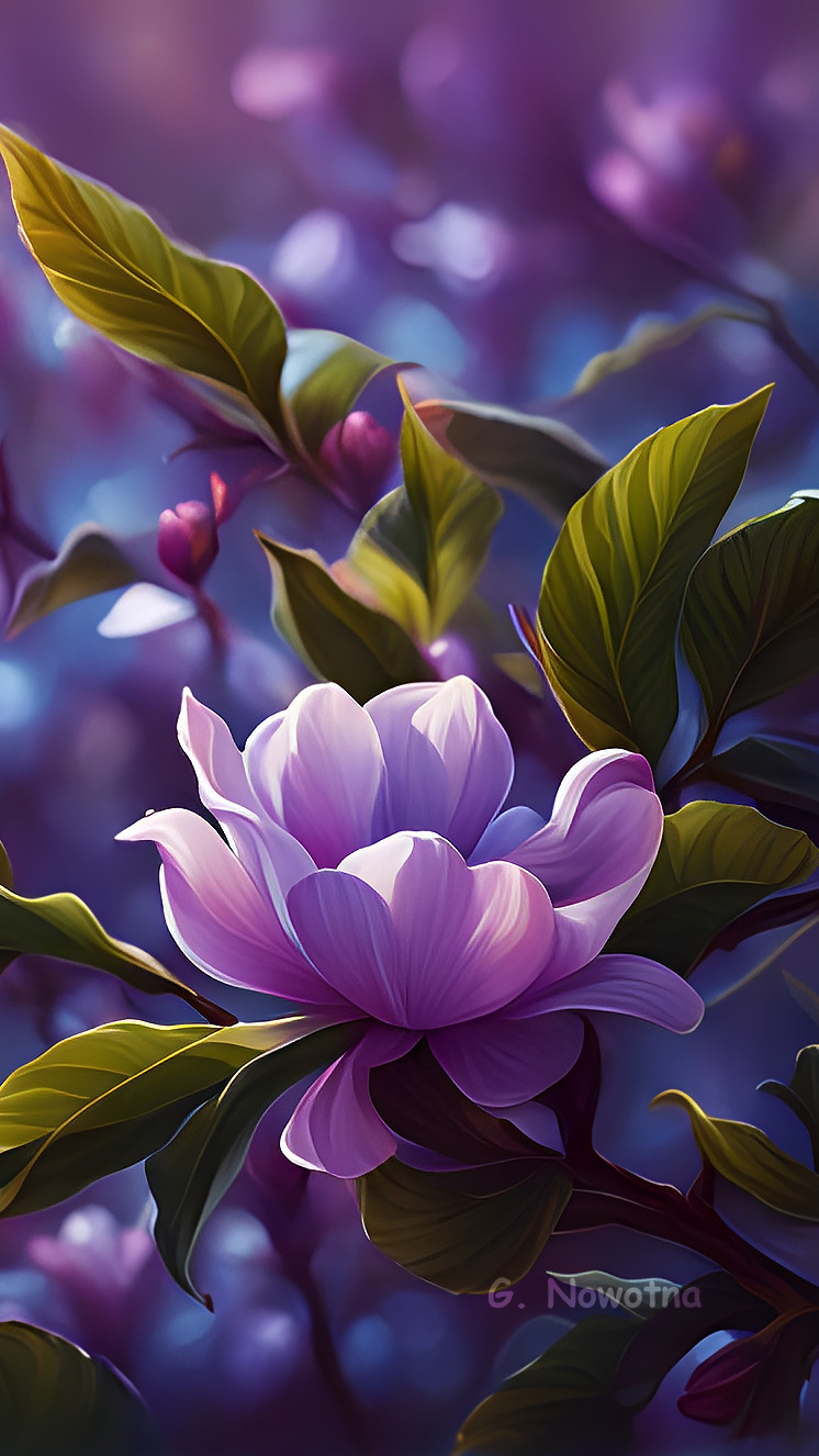 Edytor tapety: Kwiat fioletowej magnolii na gałązce