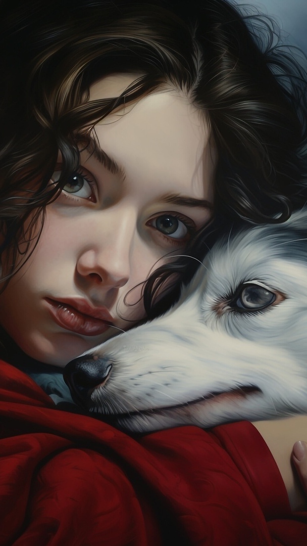 Edytor tapety: Twarz dziewczyny i mordka psa