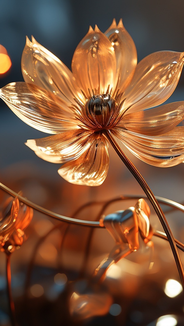 Edytor tapety: Rozświetlony pomarańczowy szklany kwiat