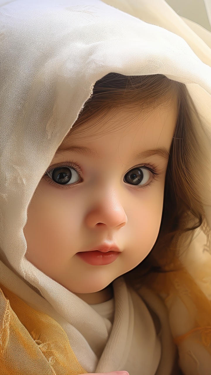 Edytor tapety: Twarz dziecka owinięta białą chustą