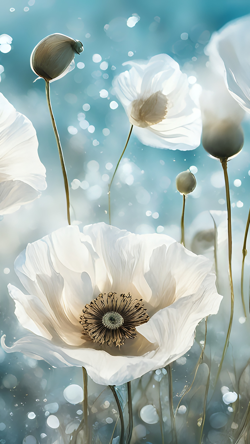 Edytor tapety: Białe maki w grafice