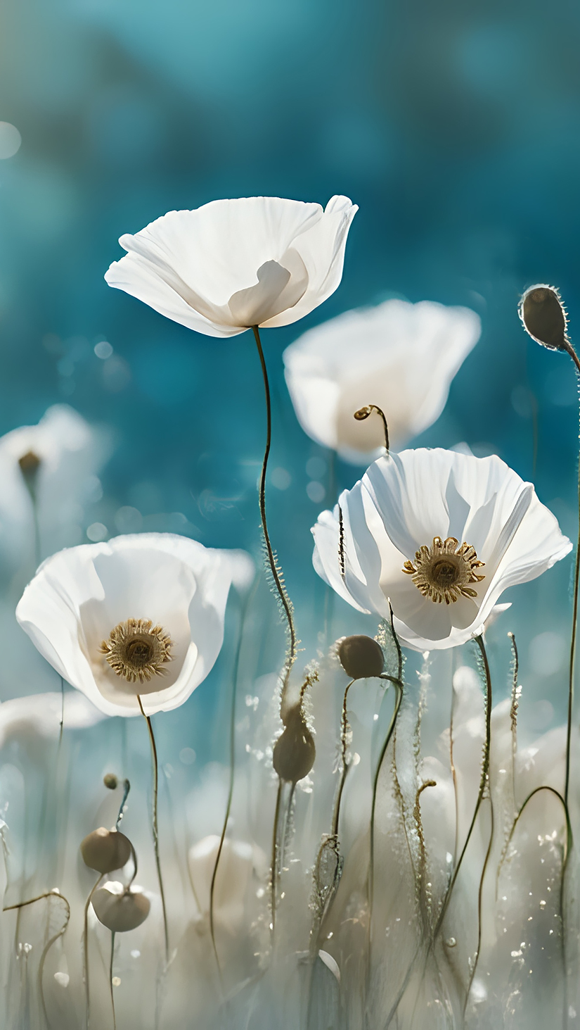 Edytor tapety: Białe maki w grafice