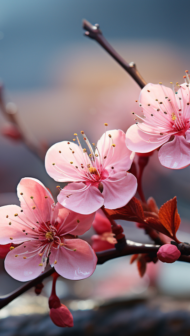 Edytor tapety: Gałązka drzewa owocowego z różowymi kwiatami