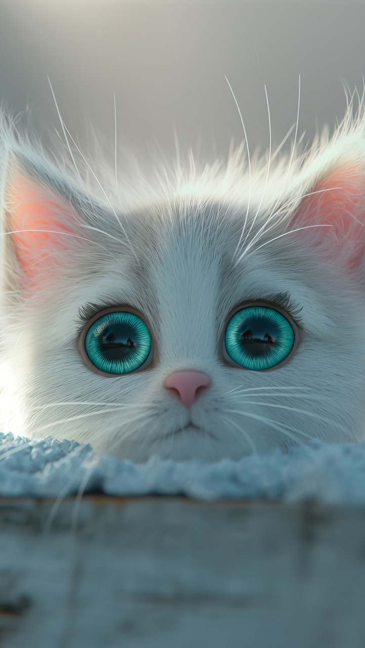 Edytor tapety: Biały kot z dużymi zielonymi oczami