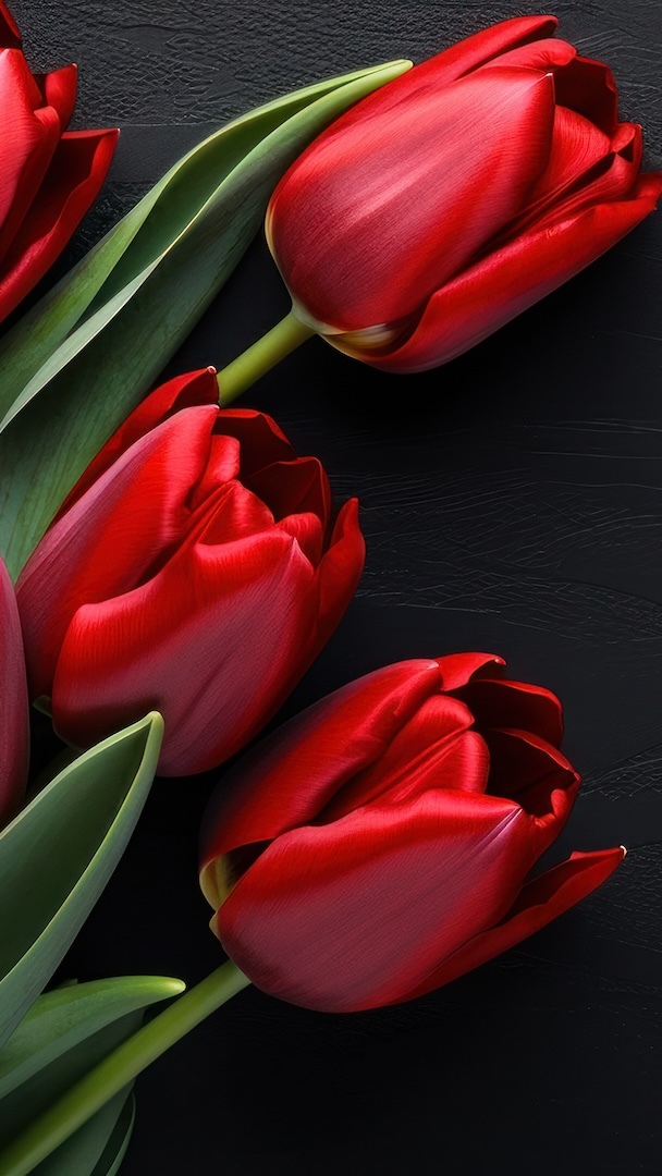 Edytor tapety: Czerwone tulipany na czarnym tle