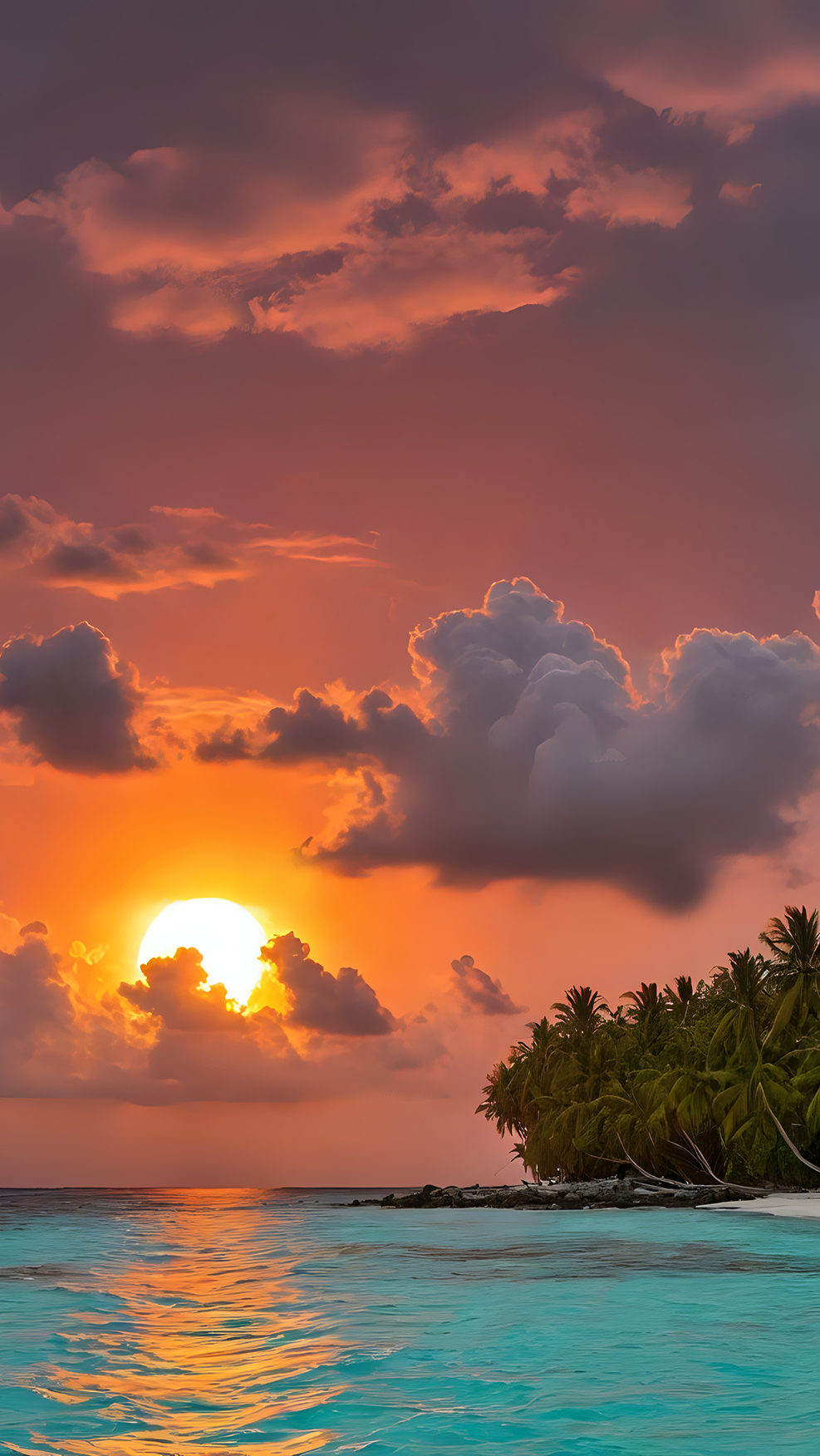 Edytor tapety: Zachód słońca wśród chmur nad morzem