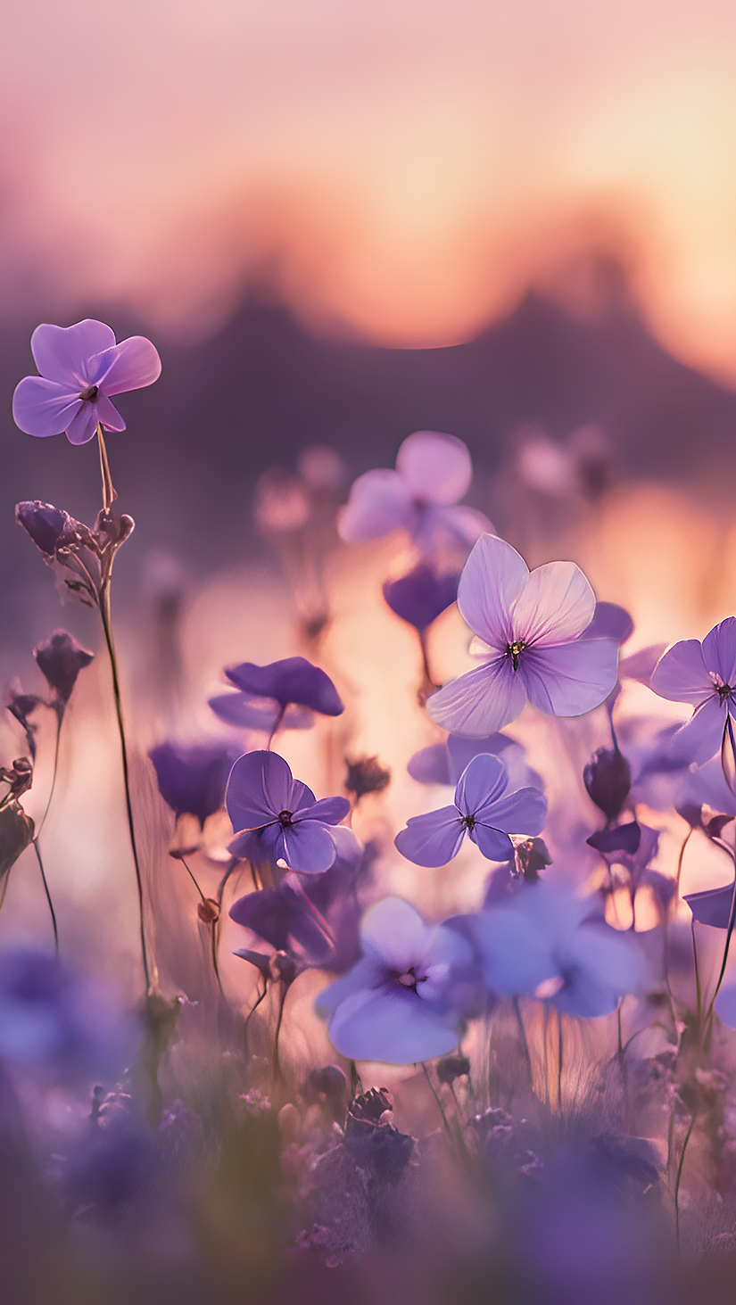 Edytor tapety: Fioletowe kwiatki na rozmytym kolorowym tle