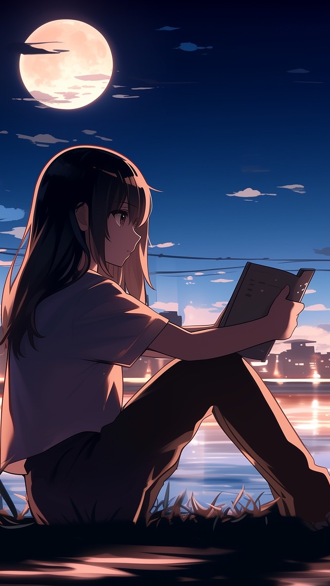 Edytor tapety: Dziewczyna z książką na brzegu rzeki